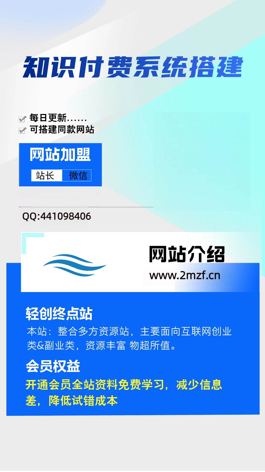 加盟轻创终点站,加盟搭建同款知识付费资源网站,实现长期稳定被动收入~